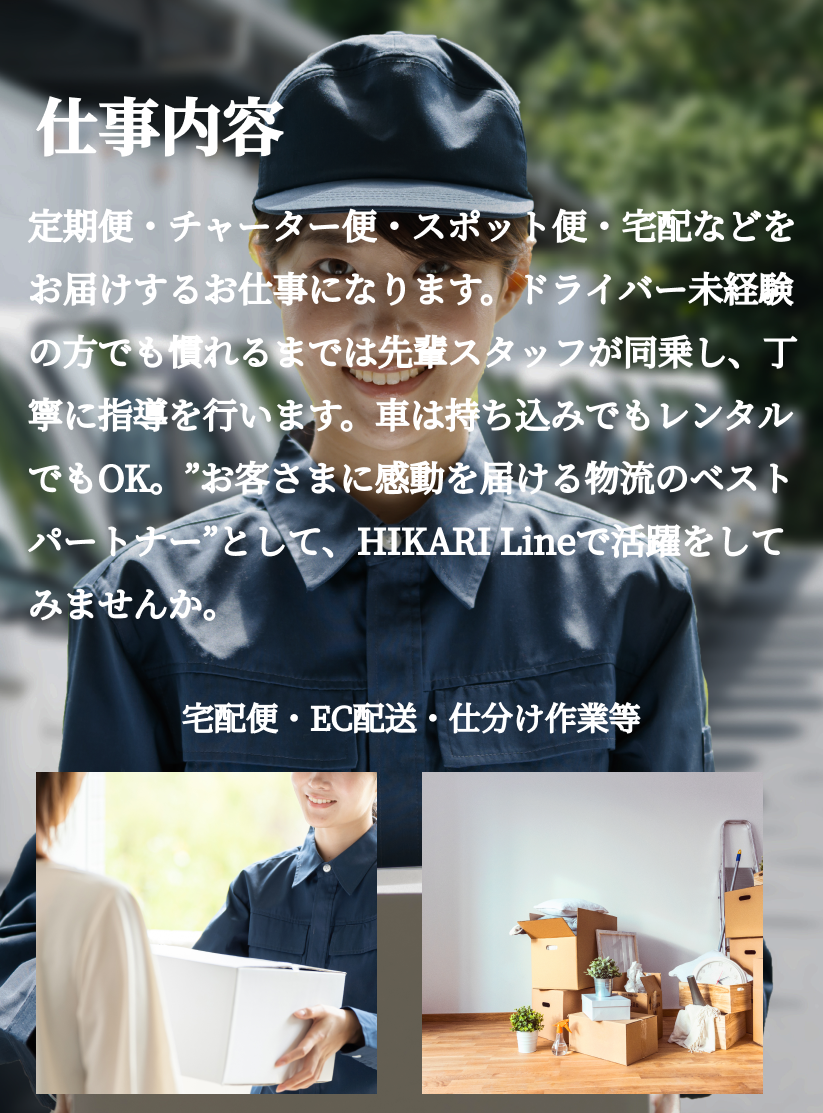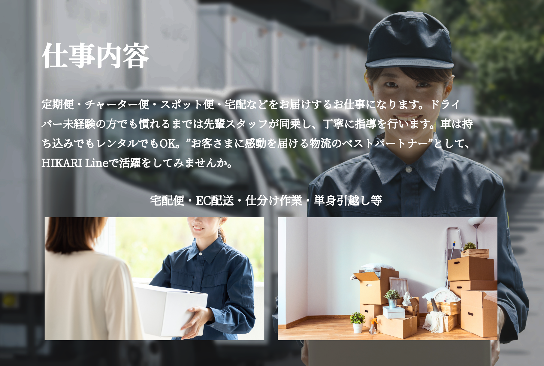 軽貨物運送業 宅配便・EC配送 チャーター便(ルート便) 単身引っ越し |
